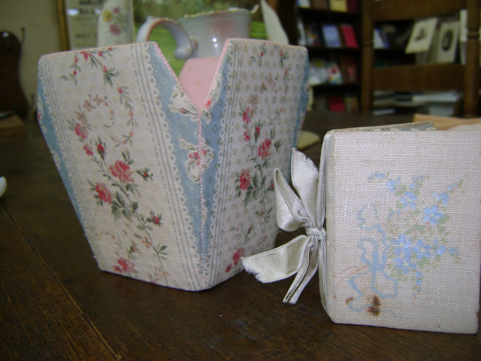 The cardboard box showed it's age but was dated 1913 as when Aunt Jennie passed away. It just occurred to me when I was typing that she died 100 years ago and therefore her work had to be older. There was a darning egg with a silk case for storing, a thin "book" pincushion and what must have been a sewing box . The box could be folded down to lay flat.